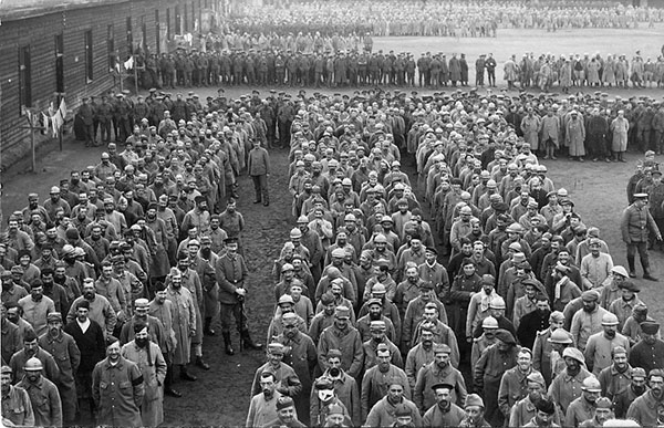 'Am Vormittag und in der Mittagsstunde wurden mehrere hundert kriegsgefangene Franzosen und Engländer aus den hiesigen Lagern zu den Sommerlagern bei Schöppingen im Kreise Ahaus gebracht, eine Vergeltungsmaßnahme für die außerordentlich schlechte Unterbringung und Behandlung unserer Leute in den französischen Gefangenenlagern in Afrika.'
