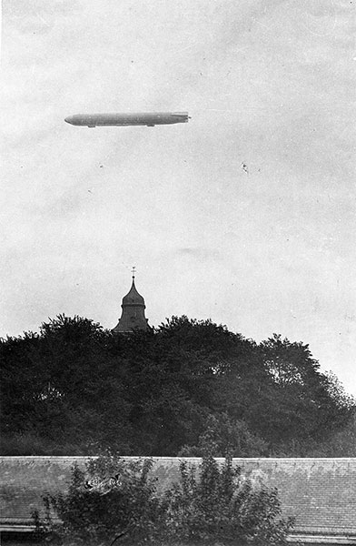 'In der Mittagsstunde kreuzte ein Zeppelin-Luftschiff von Südwesten aus über Münster mit Kurs nach Norden. Jung und alt jubelte dem Beherrscher der Luft stürmisch zu.'