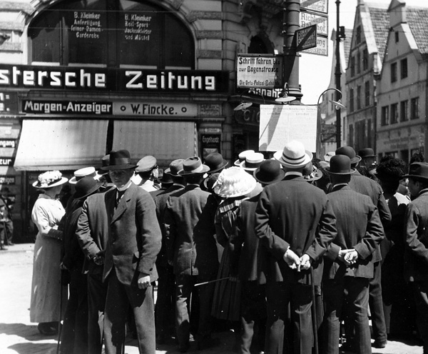 Lesen eines Sonderblatts der ‚Münsterschen Zeitung’ mit der Kriegserklärung Italiens, 23./24. Mai 1915