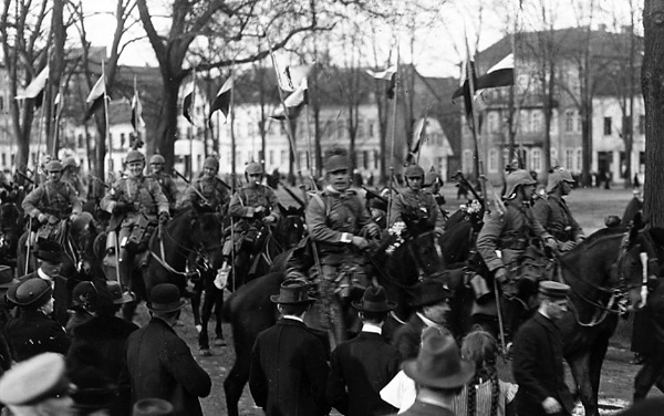 'Mit klingendem Spiel rückten am frühen Morgen von zwei Landsturmschwadronen der Kürassiere 303 Mann ins Feld. Aus Mangel an Pferden war von der zweiten Schwadron nur die Hälfte beritten. Die 13er sandten 630 Mann an die Front.'