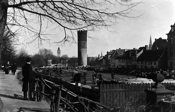 'Der Mangel an neuem Rohstoff führte im ganzen Reiche zu einer Beschlagnahme des Kupfers, Messings und Reinnickels. In diesem Monat erfolgte die freiwillige Abgabe der aus diesen Stoffen hergestellten Geschirre und Wirtschaftsgeräte der Küchen und Backstuben, Waschkessel, Badewannen, Warmwasserschiffe, Mörser usw. Bei den Ablieferungsterminen gab es vor dem Rathause stets wieder ein großes Gedränge und stundenlanges Warten. Das Kupfer an Dachbedeckungen, Regen- und Abfallrohren der städtischen Gebäude stellte der Magistrat der Heeresverwaltung freiwillig zur Verfügung, das Dachkupfer nur soweit, als es sich nicht um Teile in schwieriger Lage handelt.'