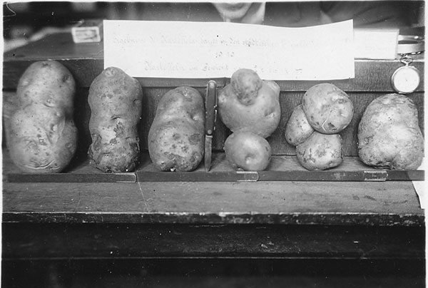 'Nachdem wochen- und monatelang der private Kartoffelverkauf fast völlig stockte [...], ist jetzt auf einmal das Angebot an alten Kartoffeln überall größer. Offenbar sind vielfach alte Bestände zur künstlichen Herbeiführung starker Nachfrage und damit hoher Preise zurückgehalten worden. Wegen der bevorstehenden neuen Ernte der Frühkartoffeln wird die alte Ernte schnell in so großen Massen auf den Markt geworfen, daß die Preise plötzlich niedriger sind als sonst in Friedenszeiten!'