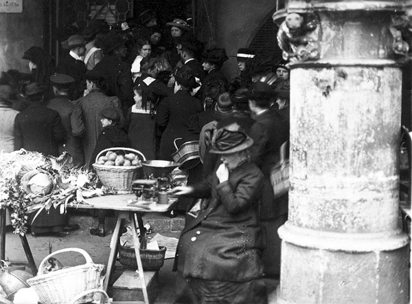 'Der städtische Gemüsemarkt auf dem Syndikatplatz erfreut sich größter Beliebtheit und stärksten Besuches. Die Ware ist ausgezeichnet, billig und in großen Mengen vorrätig. Der Ruf unseres Gemüsemarktes hat sich schnell verbreitet und in einer Reihe von Städten bereits Nachahmung gefunden, wozu der Kommandierende General in einem Rundschreiben aufgefordert hat.'