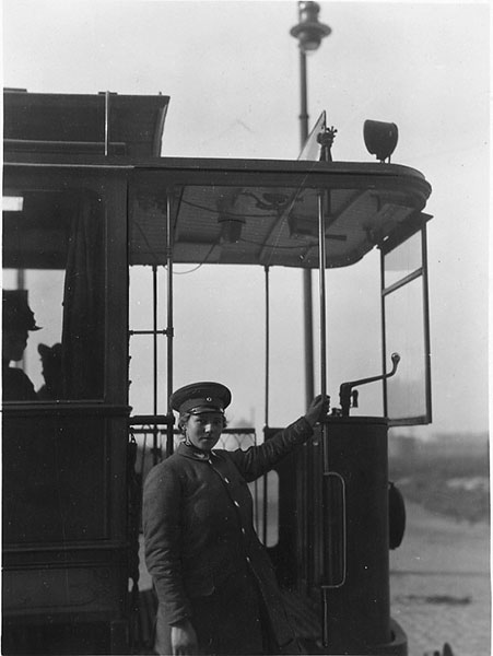 'Infolge der Einberufung zahlreicher Schaffner sind auch auf der hiesigen Straßenbahn weibliche Hilfskräfte eingestellt.'