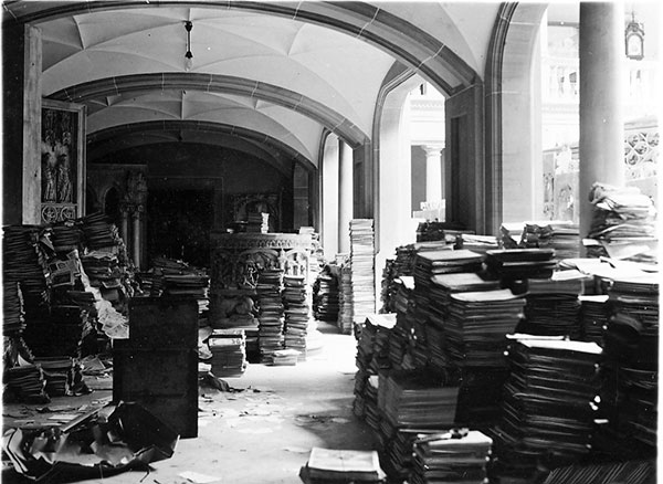 'Mit Rücksicht auf den hohen Bedarf an Füllstoff für Strohsäcke forderte der Magistrat die Bürger und Behörden auf, sämtliches Zeitungspapier zu sammeln und an die Kasernen abzuliefern, damit aus diesem Papier die Strohsäcke gefüllt werden.'