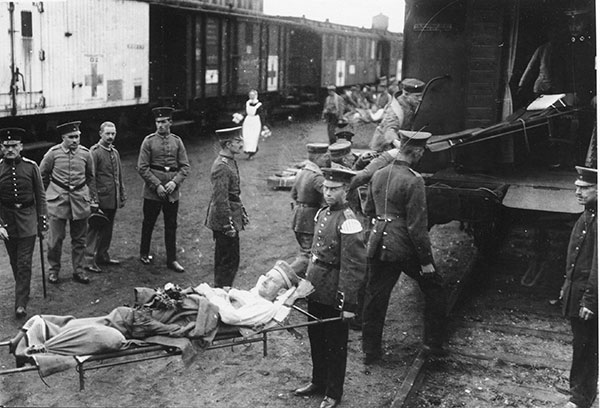 'Am Nachmittage langten wie schon an mehreren Tagen vorher große Verwundetentransporte von der Somme, wo der schwere Kampf noch immer fortdauert, hier an.'