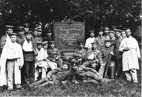 'Für den Bereich des VII. Armeekorps ist hier im Landeshause eine Arbeitsnachweiszentrale für Kriegsbeschädigte eingerichtet. Über die Mithilfe des Handwerks bei der Unterbringung der Kriegsbeschädigten hielt der Direktor der städtischen gewerblichen Fortbildungsschule, Josef Heimann, an mehreren Abenden Angehörigen des Handwerkerstandes Vorträge mit Lichtbildern.'