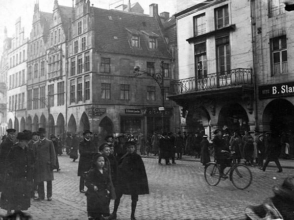 'Am folgenden Morgen wurde in der Lambertikirche nach alter Sitte, auf Grund einer Meßstiftung des Lizentiaten Peter Wittfeld, Bürgermeisters hiesiger Stadt in den Jahren 1660 und 1682 bis 1688, ein feierliches Hochamt gehalten. Uraltem Brauch gemäß kündete um 12 Uhr ein viertelstündiges Schlagen der städtischen Brandglocke im Lambertikirchturm den Beginn der Neuwahl an, aus welcher der Erste Beigeordnete Franz Dieckmann mit 41 Stimmen einstimmig als Bürgermeister hervorging. Der Schreiber dieser Chronik veröffentlichte an diesem Tage im 'Westfälischen Merkur' eine Liste von 164 Bürgermeistern. Der Ernst der Zeit ließ es nicht zu, daß, wie in Vorzeiten, ein fröhliches Wahlfest abgehalten wurde und beim Ratszech der historische Bürgermeistertrunk aus dem Goldenen Hahn der Stadt Münster auf ihr Wohl geschehen konnte.'