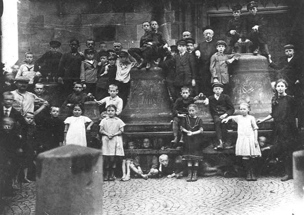 'Aus der Kreuzkirche sind 2, aus der Ägidii- und der Klemenskirche je 1 Bronzeglocke abgeliefert.'