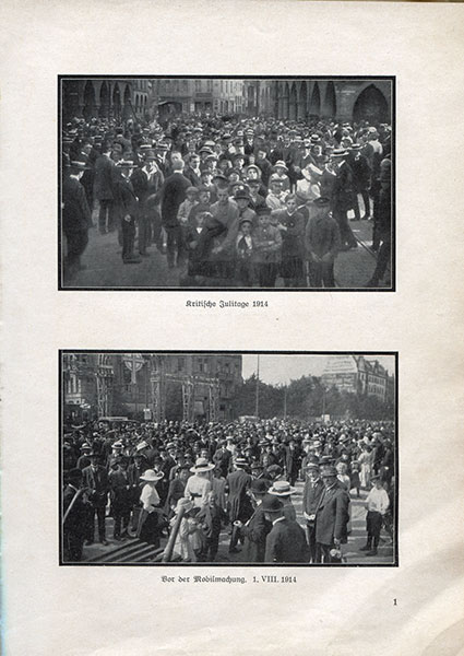 'Den Einfluß des Krieges auf das öffentliche und private Leben der Stadt Münster für die Nachwelt in Wort und Bild festzuhalten, erachtete der Magistrat alsbald nach der Mobilmachung für eine vaterländische und historische Pflicht, zu deren Erfüllung er den unterzeichneten Stadtarchivar mit der Führung einer Münsterschen Heimatchronik des Weltkrieges und mit der Sammlung von Münsterschen Kriegsbildern beauftragte. In der Kriegschronik [...] werden auf Grund amtlicher Akten, der Ortsberichte der hiesigen Tageszeitungen und eigener Beobachtungen alle wichtigen Begebenheiten des Kriegszustandes hiesiger Stadt in ihrer zeitlichen Folge verzeichnet. [...] In Ergänzung der Kriegschronik soll die Bildersammlung das interessante Leben und Treiben am Sitze des Stellvertretenden General-Kommandos des VII. Armeekorps und in einer so starken Garnison, wie sie Münster ist, im photographischen Bilde festhalten.