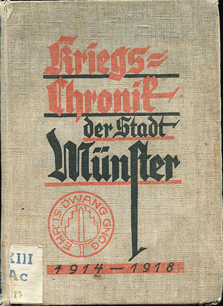 Stadtarchivar Dr. Eduard Schulte erhielt im August 1914 den offiziellen Auftrag des Magistrats, eine Chronik zum Kriegsgeschehen in der Stadt Münster zu erstellen. Diese Kriegschronik liegt nicht mehr im Original, sondern nur in publizierter Form vor. Sie ist 1930 als Band VI der Reihe 'Quellen und Forschungen zur Gechichte der Stadt Münster' unter dem Titel Kriegschronik der Stadt Münster 1914/18 erschienen.