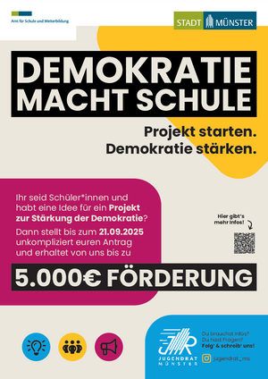 Auch im kommenden Schuljahr 26/27 haben Schülerinnen und Schüler in Zusammenarbeit mit der Schulleitung die Möglichkeit, Fördermittel für die Durchführung von Demokratiestärkungsprojekten an ihren Schulen zu beantragen. Wir freuen uns sehr, dies unterstützen zu können. Nähere Informationen zu Antragstellung, Förderrichtlinien etc. unter Zuschüsse.