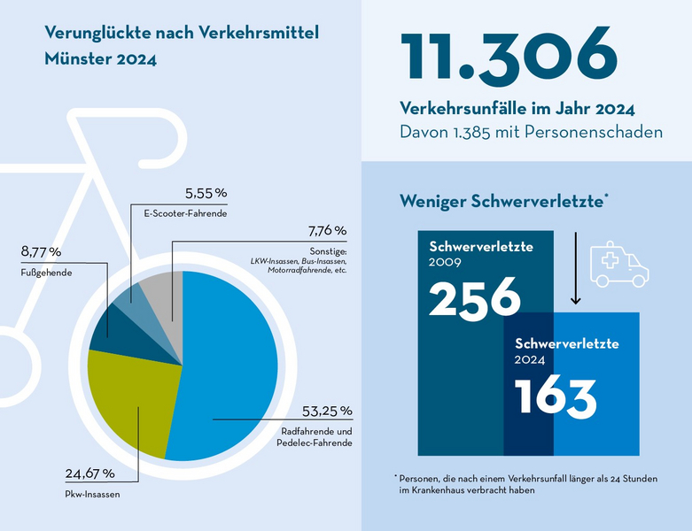 - Verkehrsunfallstatistik 2024 Quelle: Polizeipräsidium Münster 2025