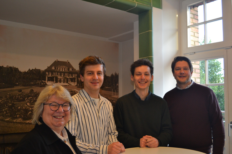 Große Freude vor der Pause „zwischen den Jahren“ am Geschichtsort Villa ten Hompel in Münster: Jakob Scheidtweiler und Arne Dietrich, aktiv im Fachschaftsrat der Musikhochschule Münster, überbrachten dem Förderverein die Nachricht vom Spendenerlös zweier Konzerte: 1.000 Euro kamen zusammen für die gemeinnützigen Zwecke in der historisch-politischen Bildung und für Geschichtskultur, die der Förderverein verfolgt.